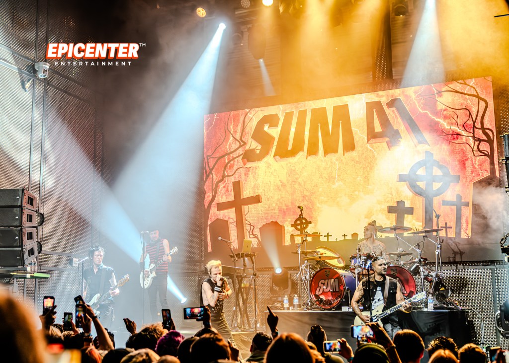 Con entradas agotadas, la banda entregó más de 90 minutos de pura energía y nostalgia. Desde el primer acorde hasta el último estruendoso aplauso, Sum 41 deleitó a los fans con un setlist cargado de éxitos que resonaron en el corazón de todos los presentes. Canciones como «Fat Lip», «In Too Deep», «Still Waiting» y muchas más hicieron que la multitud coreara cada palabra con pasión y emoción.