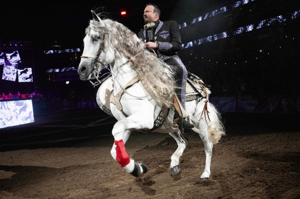 Pepe Aguilar, quien ahora ostenta el récord de más presentaciones en el Honda Center, superando a artistas como Elton John y Gwen Stefani, deleitó a la audiencia con su poderosa voz y presencia escénica, interpretando desde éxitos recientes como «Hasta Que Me Duermo» hasta clásicos atemporales como «Por Mujeres Como Tú».
