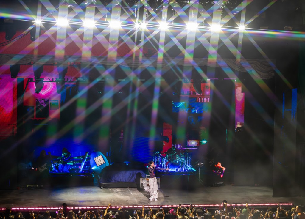El concierto comenzó con Young Miko sentada en una cama, representando su cuarto, en sintonía con las ilustraciones de su nuevo álbum “att.”.