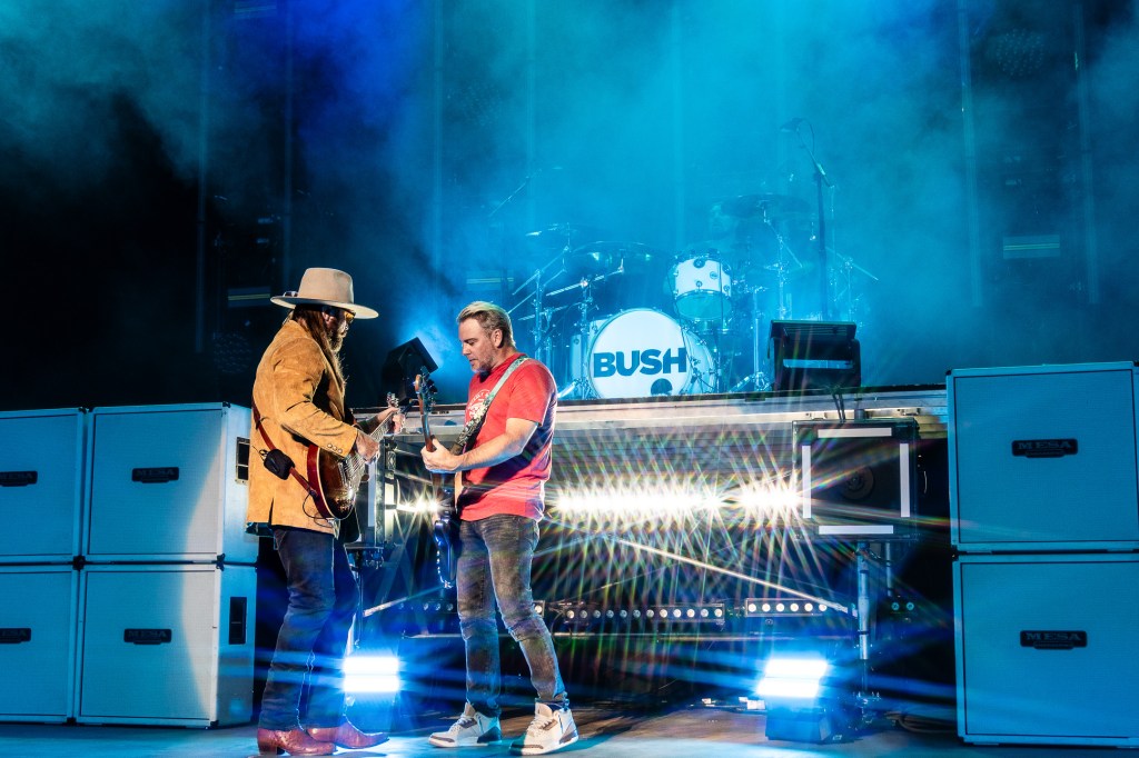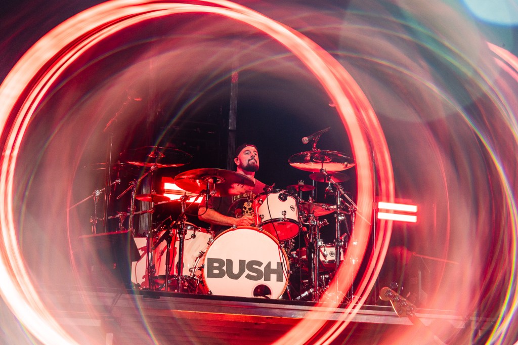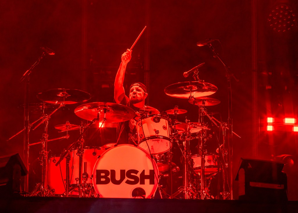 Finalmente, a las 9:15 PM, Bush salió al escenario bajo una iluminación azul. Nik Hughes baterista de la banda fue el primero en aparecer, marcando el ritmo con “Everything Zen”, seguido por el resto de la banda. Gavin Rossdale, Corey Britz, Nik Hughes y Chris Traynor desbordaron energía, saltando de un lado a otro mientras tocaban “Machinehead” y “Bullet Holes”. La noche continuó siendo épica, y en un momento memorable, Gavin bajó del escenario para acercarse al público en las filas más altas del anfiteatro, sorprendiendo gratamente a los espectadores.