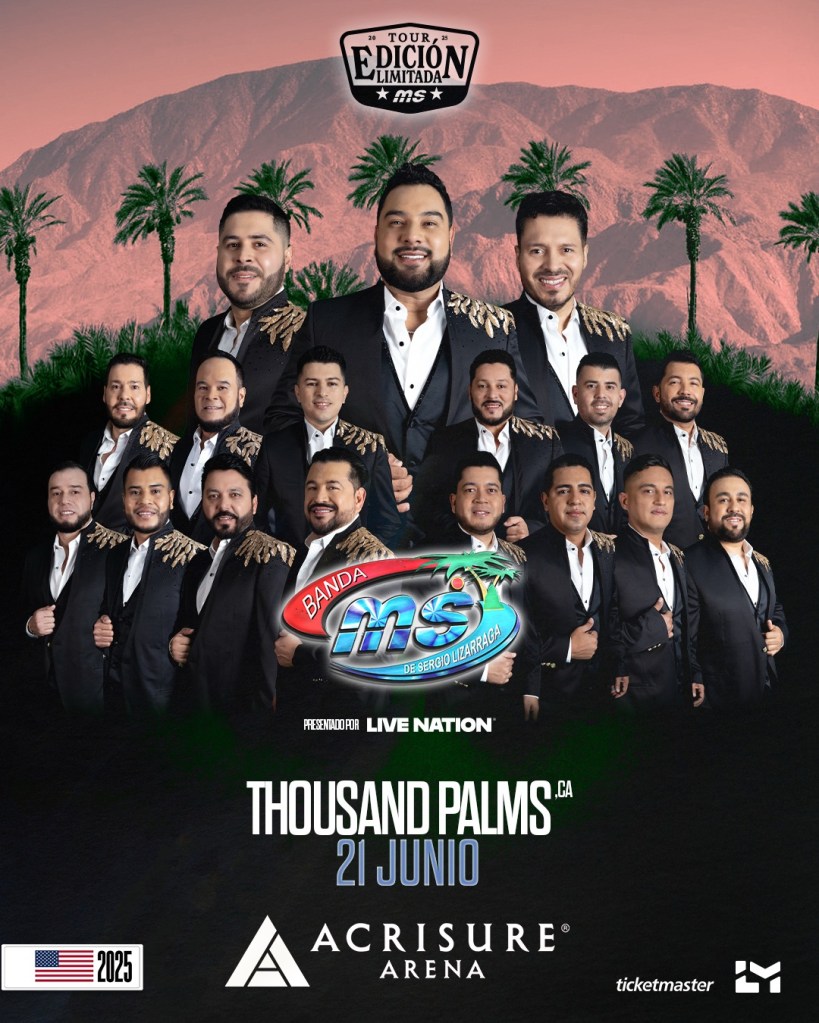 BANDA MS, reconocida como una de las bandas más influyentes de la música regional mexicana, llegará al Acrisure Arena en Palm Desert, California, este 21 de junio como parte de su esperada gira «Edición Limitada».