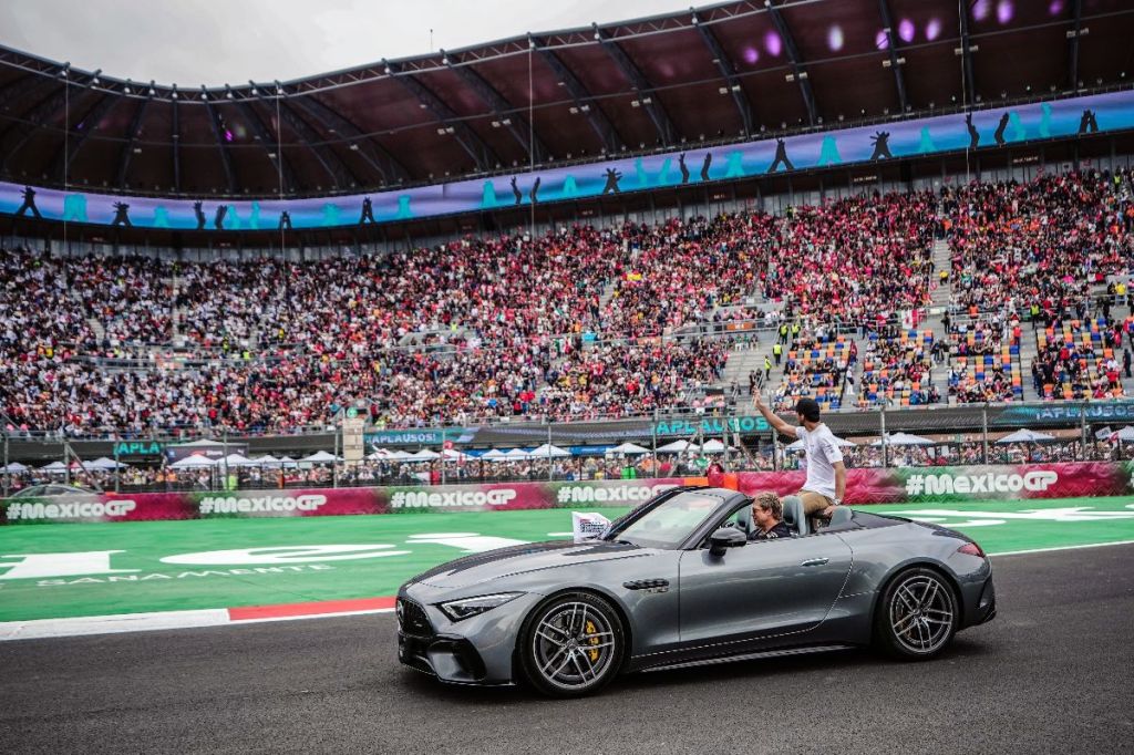Para que la película mostrara mayor realismo, Formula 1 permitió que Brad Pitt (Sonny Hayes) estuviera en ciertas ceremonias con los 20 pilotos de la parrilla, por ello vimos al actor estadounidense manejar el auto designado para el APXGP (el equipo ficticio) en el ‘Drivers Parade’ del Mexico GP, con Luciano Bacheta a su lado, quien encarna al piloto Luca Cortez.