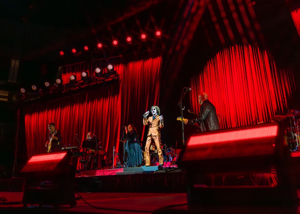 Visualmente, el escenario estaba vestido de matices rojizos y azules. Las luces siguieron la dinámica de las canciones: destellos intensos en los momentos explosivos, y fondos suaves en los pasajes íntimos. Cada elemento audiovisual potenció la narrativa sonora, transformando la presentación en un espectáculo multidimensional.